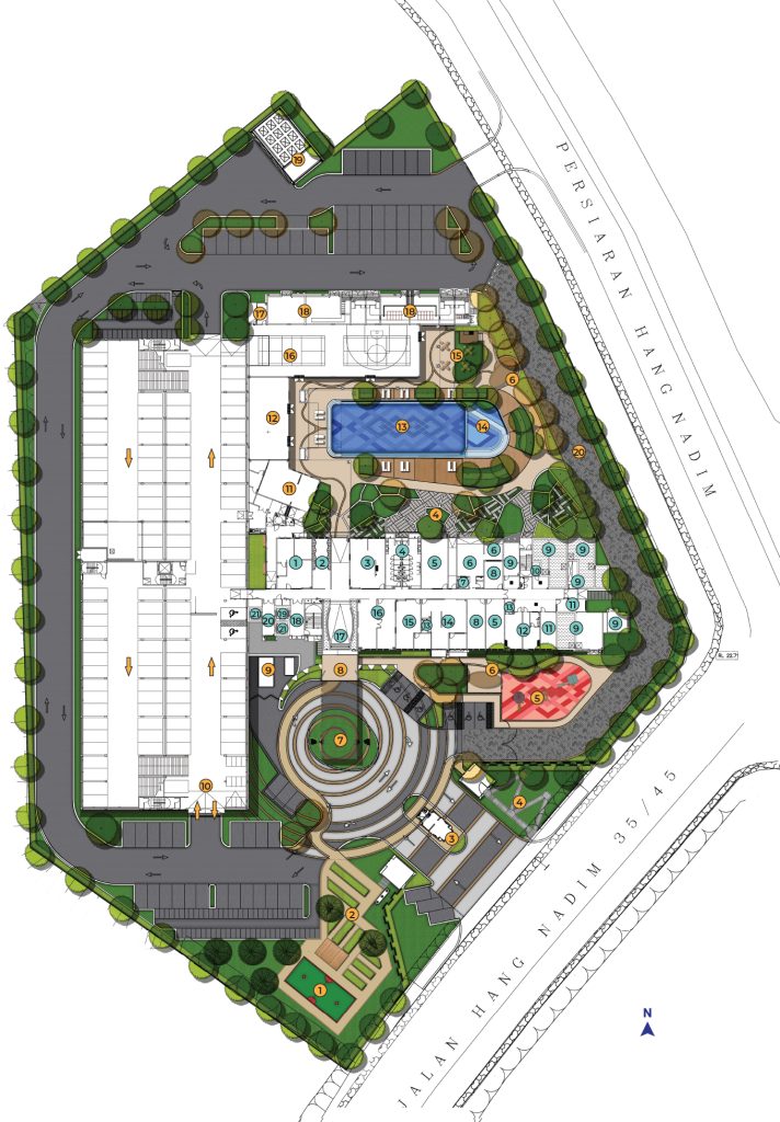 Wheelchair accessible landscaped parks, walkways, and carpark