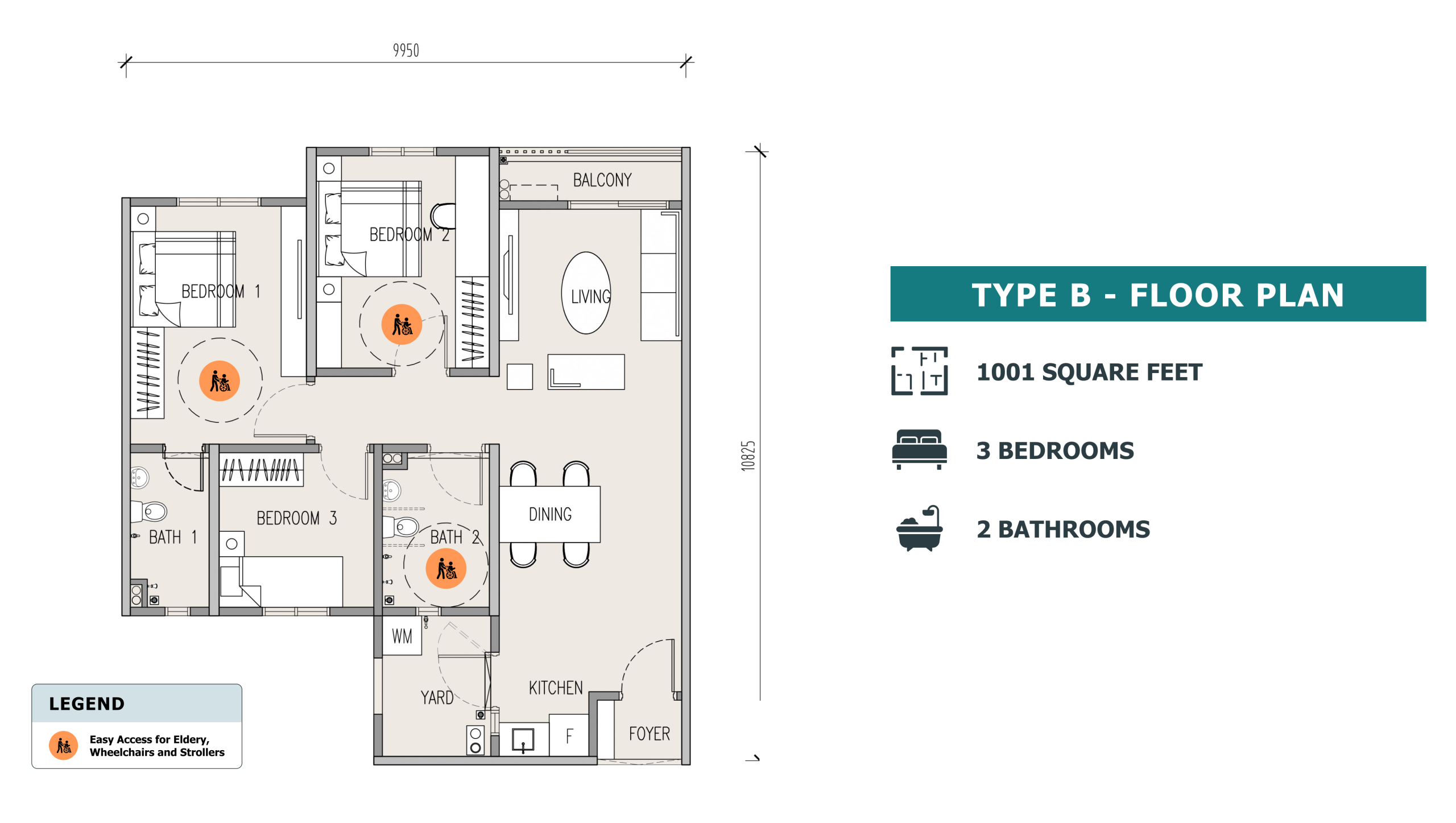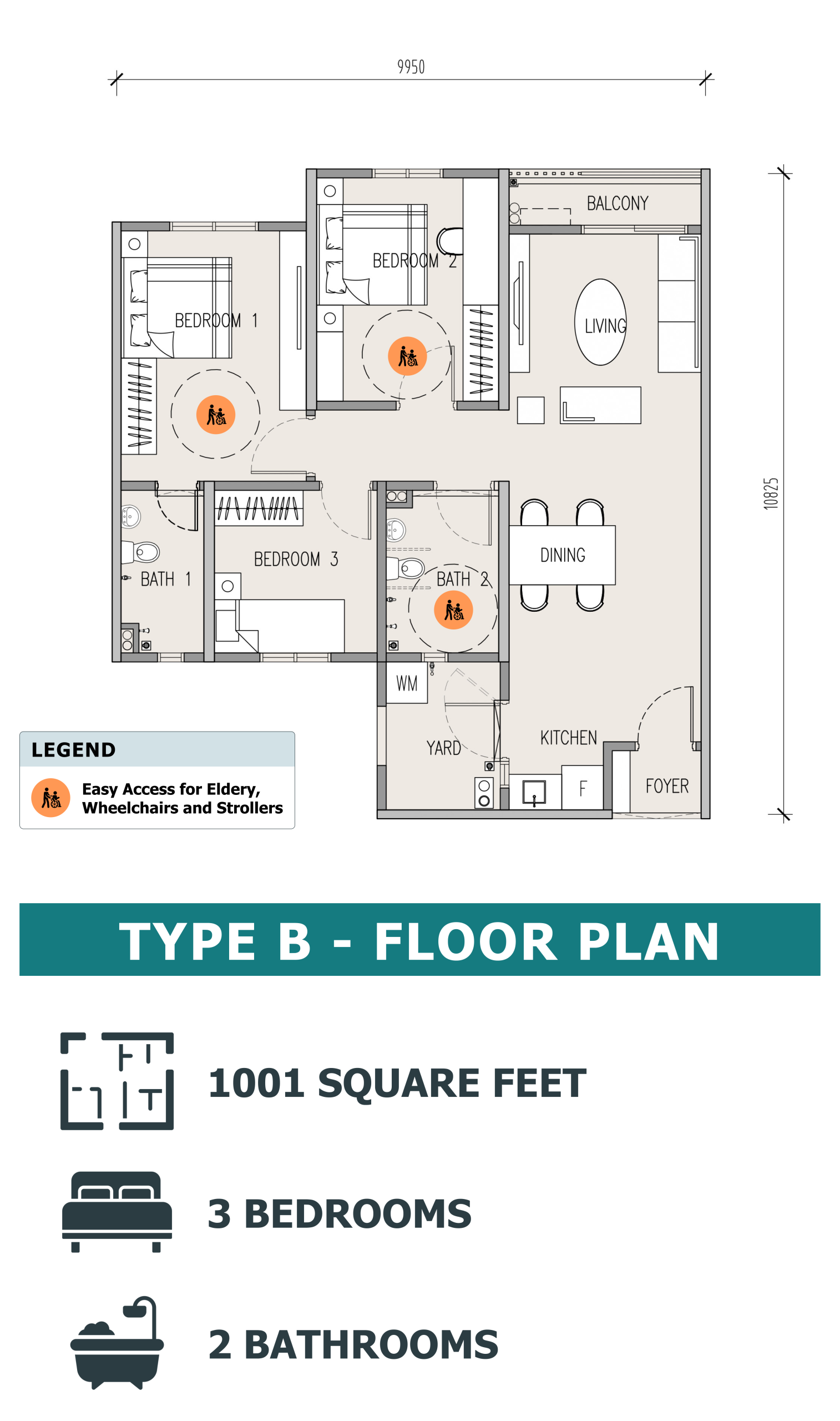 | Living / Dining / Kitchen | Ceramic Tiles |